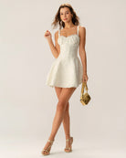 Belltoile Beyaz Jakarlı Dantelli Slip Mini Elbise