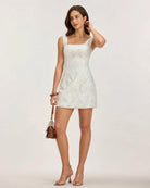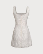 Beyaz Dokulu Kare Yaka Mini Elbise