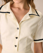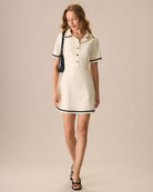 Belltoile™ Kadın Bej Yaka Kontrast Mini Elbise