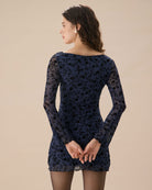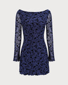 Belltoile™ Kadın Mavi Transparan Uzun Kollu Mini Elbise