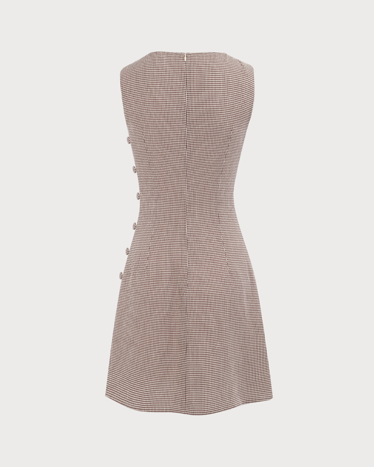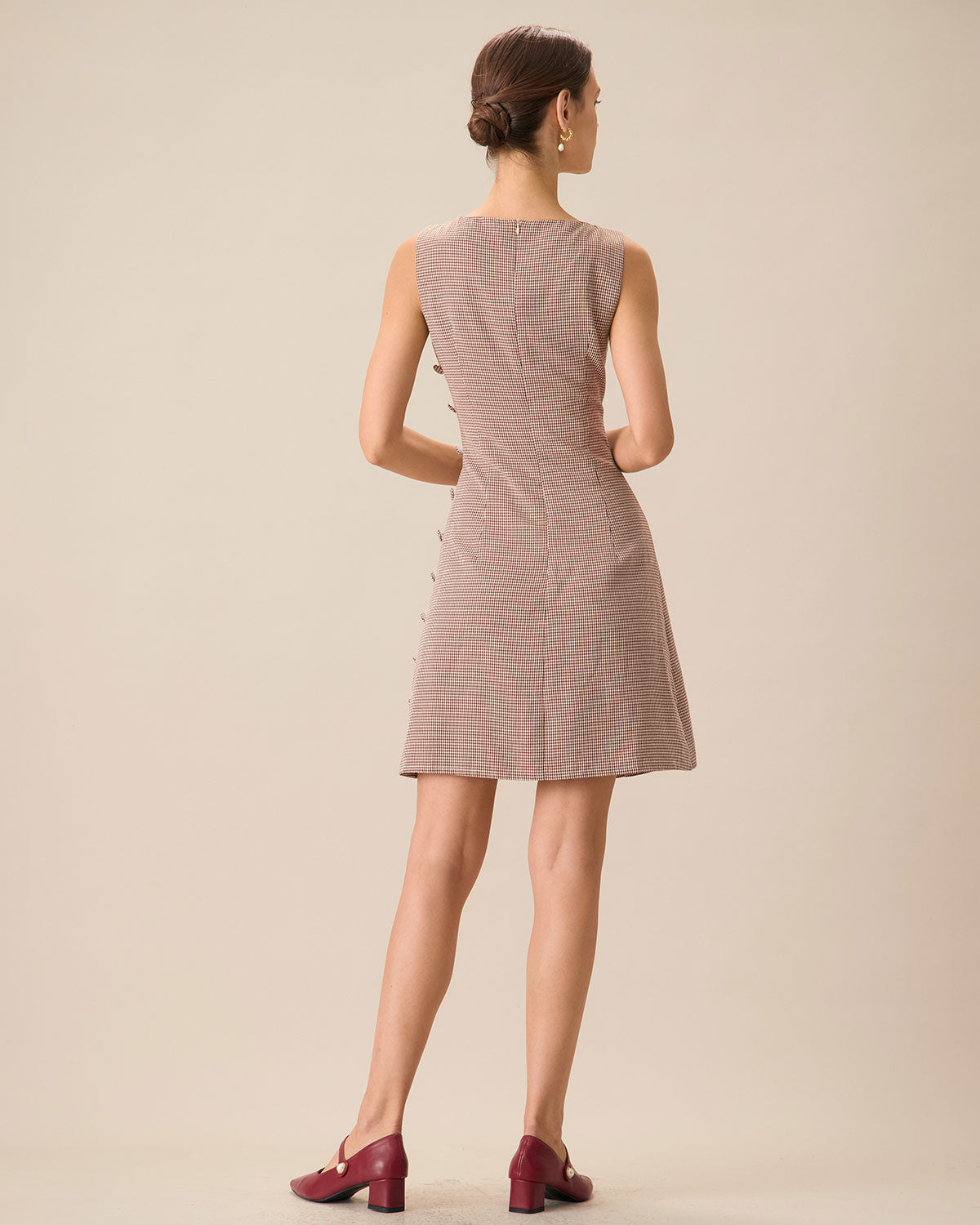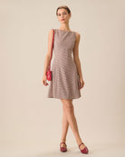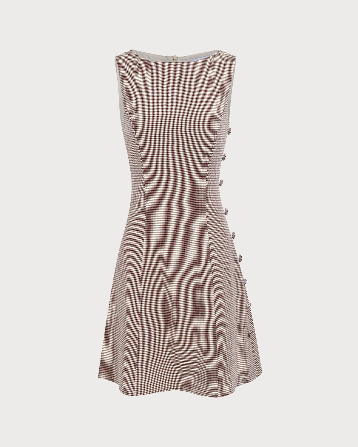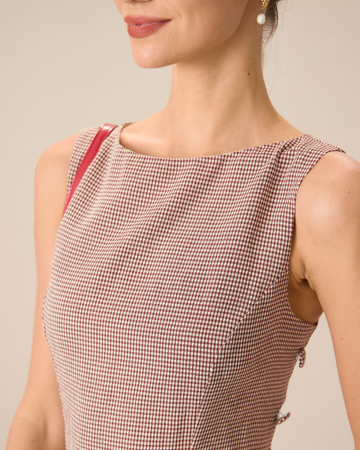 Belltoile™ Kadın Kayık Yaka Kahverengi Ekose Mini Elbise