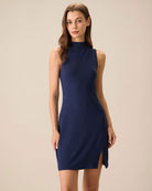 Belltoile™ Kadın Lacivert Balıkçı Yaka Triko Mini Elbise