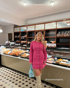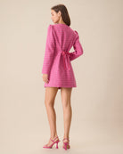 Kadın Pembe Tek Düğmeli Tweed Mini Elbise