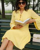 Sarı Çan Kollu A Kesim Mini Elbise