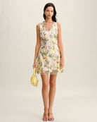 Sarı V Yakalı Çiçekli Kolsuz Mini Elbise