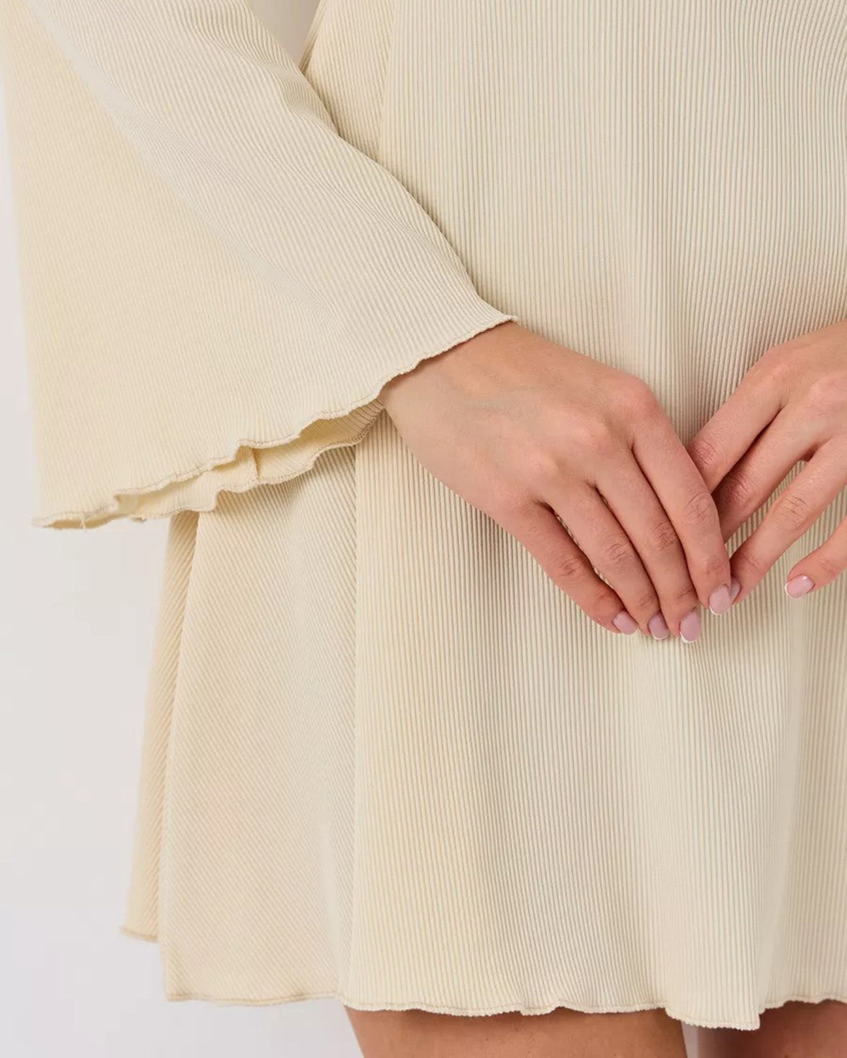 Bej Yuvarlak Yaka Kolsuz Mini Elbise