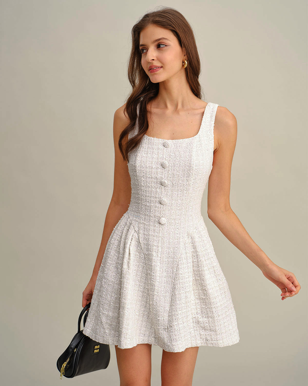 Şarap Kırmızısı Kare Yaka A Kesim Mini Elbise
