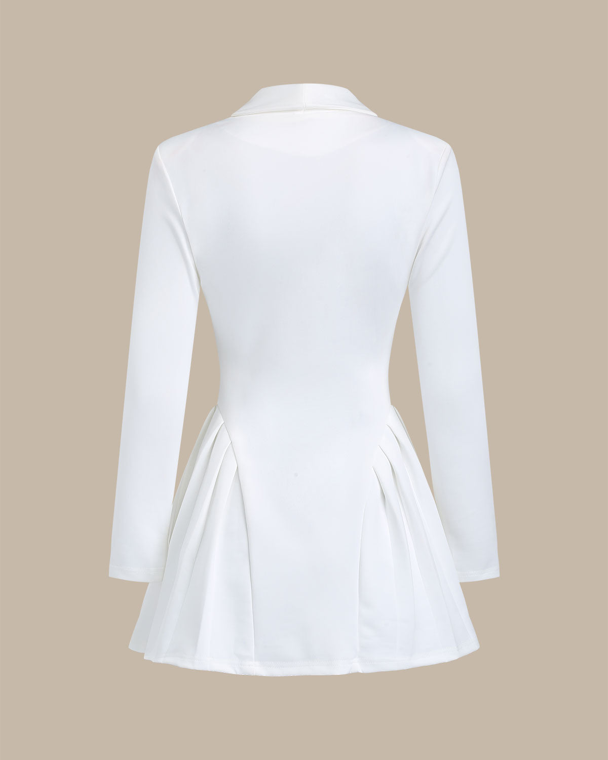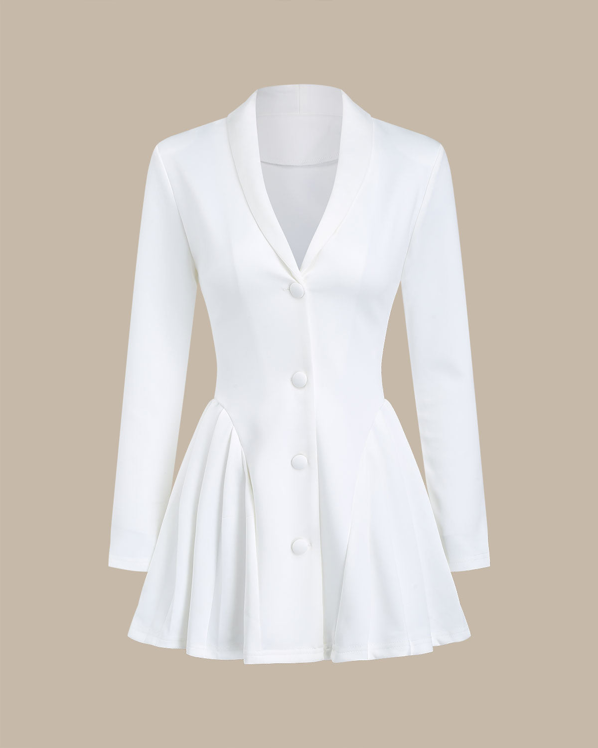 Beyaz V Yaka A Kesim Düğmeli Mini Elbise