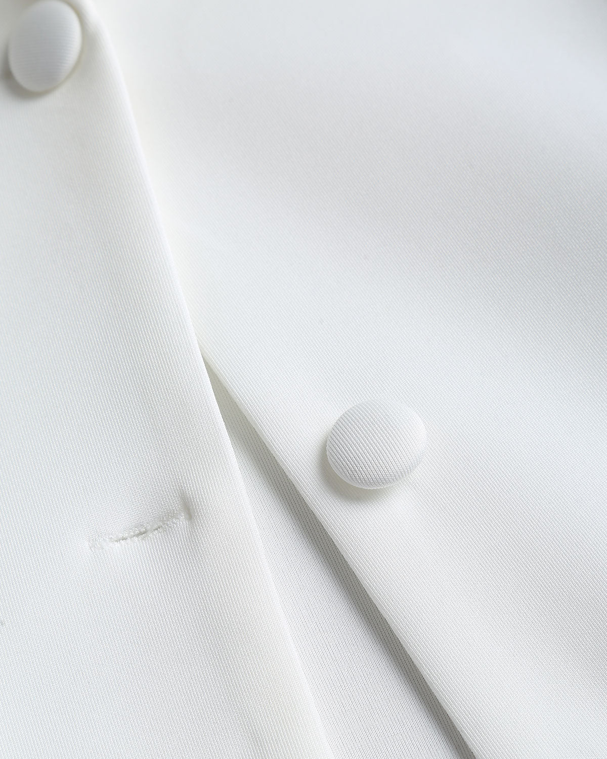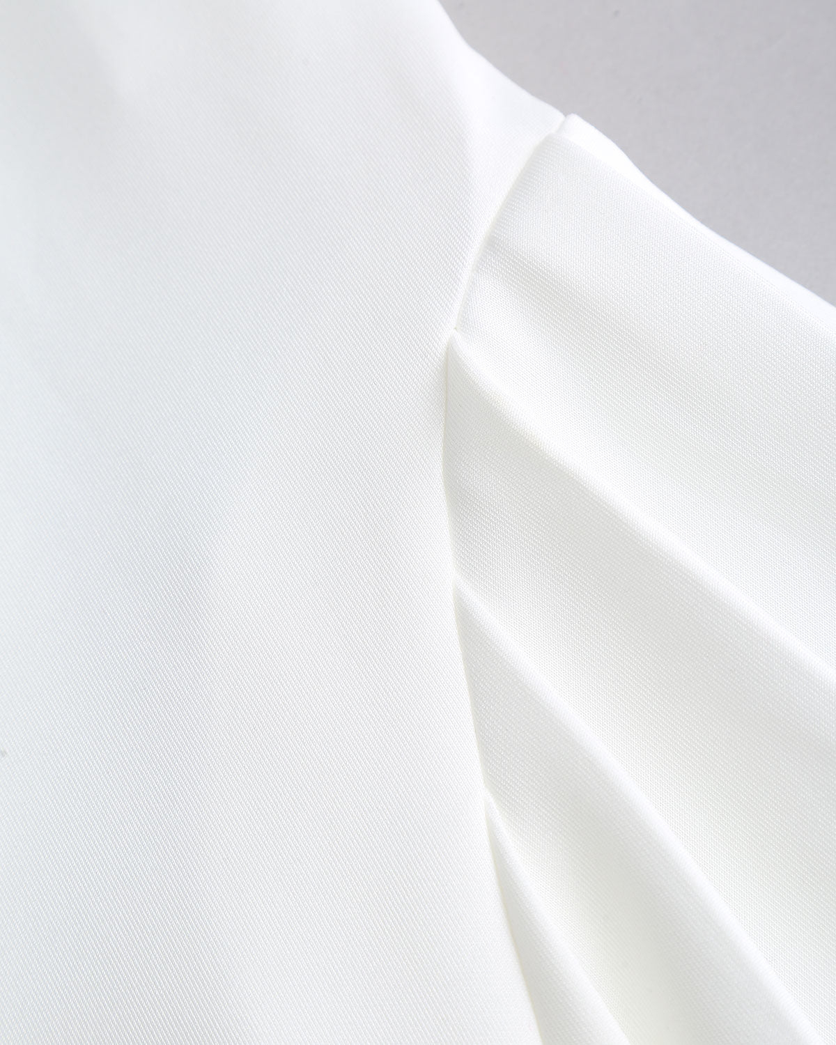 Beyaz Kabarık Kollu Düğmeli Mini Elbise