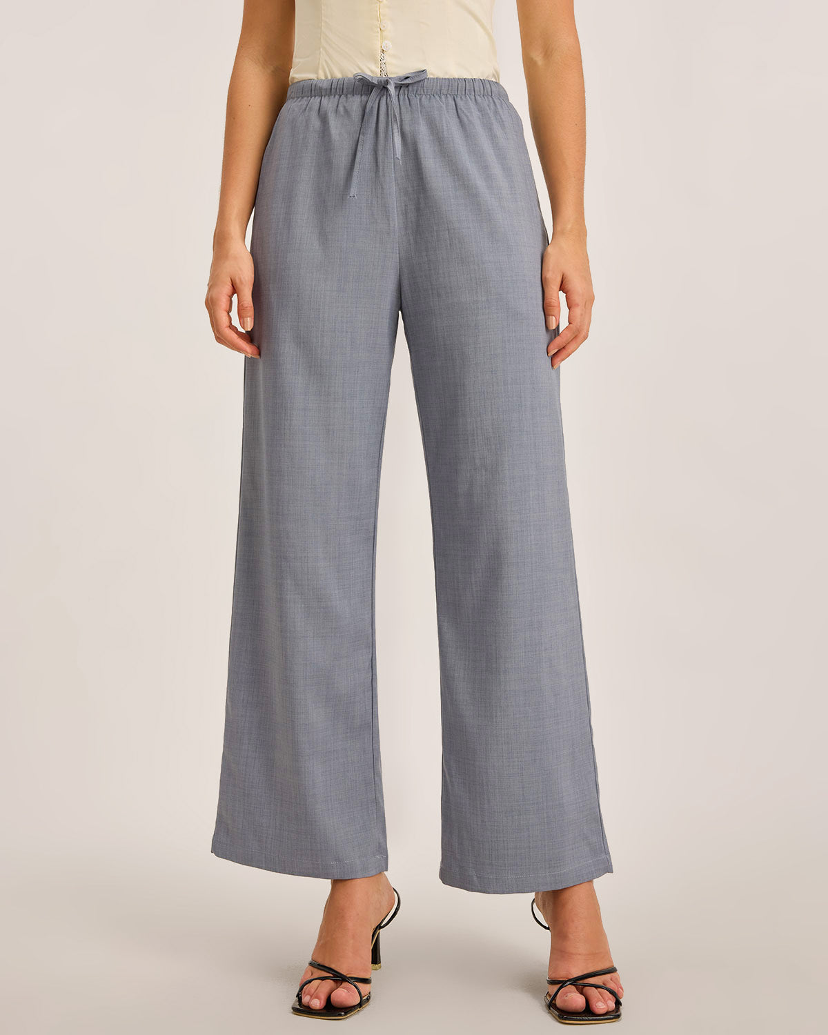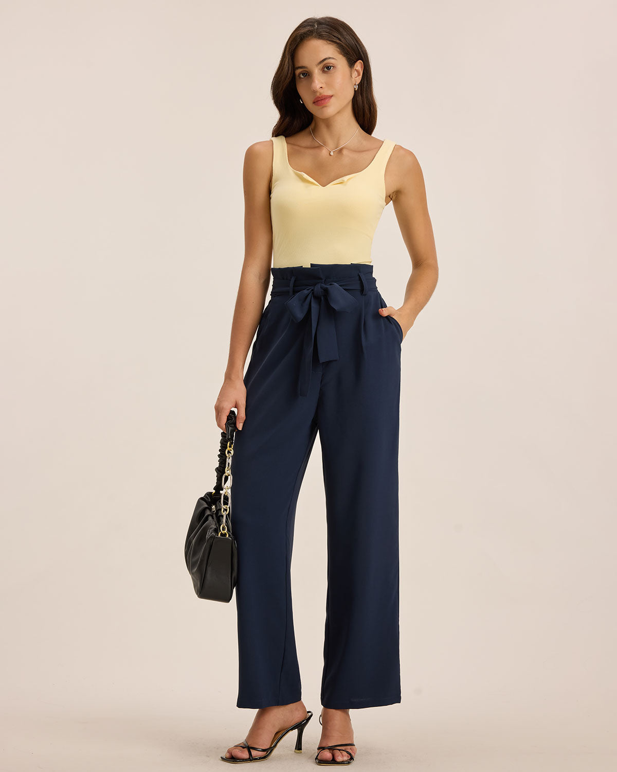 Lacivert Elastik Bel Geniş Paça Günlük Pantolon