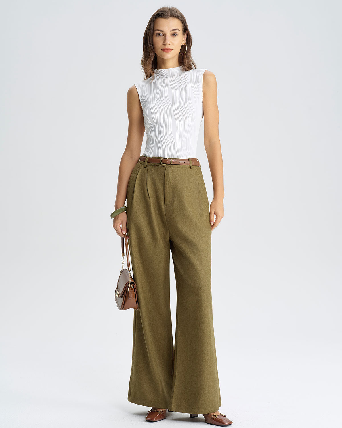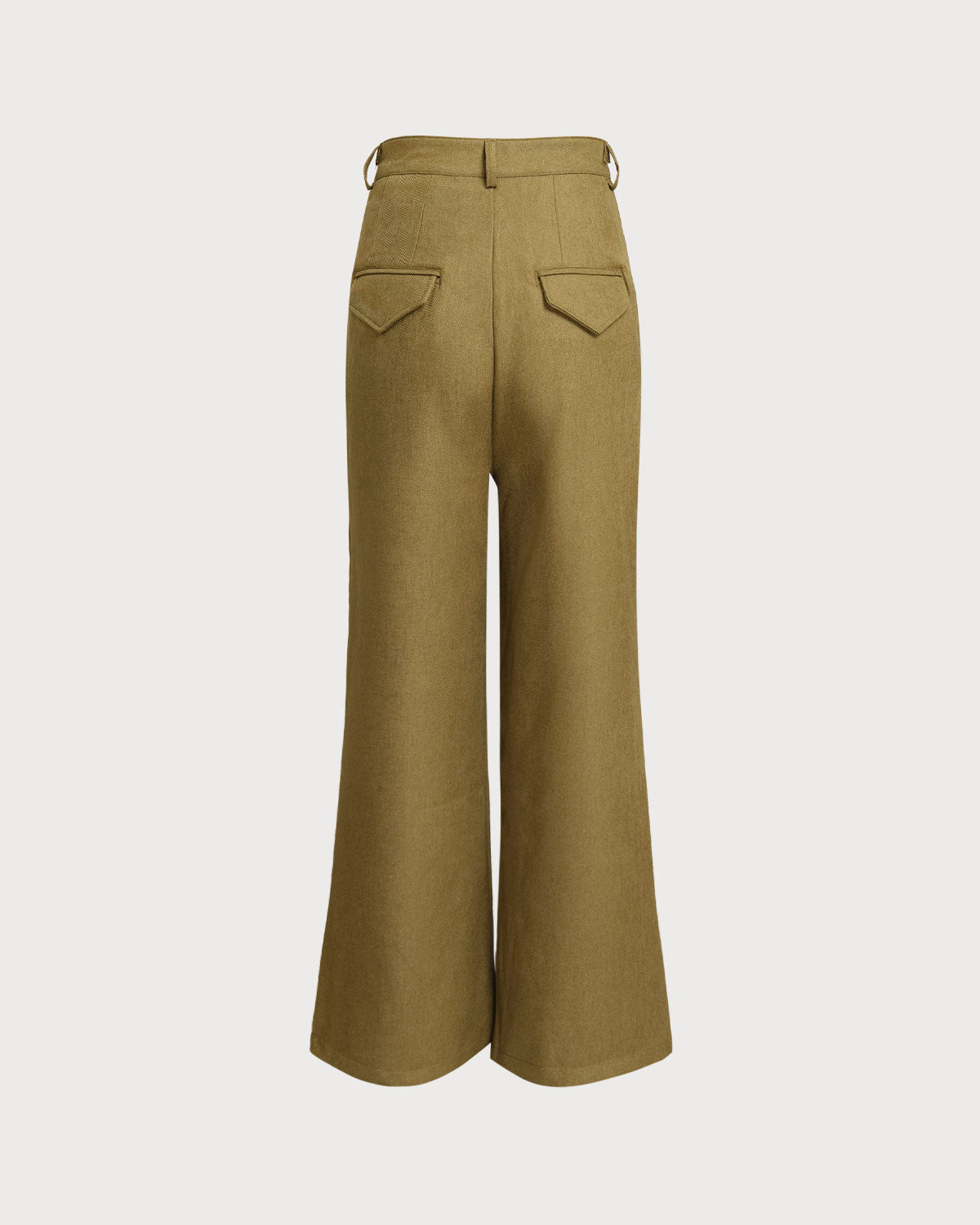 Haki Doğal Bel Cepli Geniş Paça Pantolon