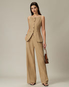 Kahverengi Elastik Bel Cepli Düz Pantolon