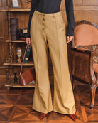 Haki Doğal Bel Cepli Geniş Paça Pantolon