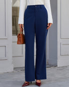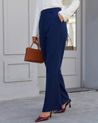 Lacivert Elastik Bel Geniş Paça Günlük Pantolon