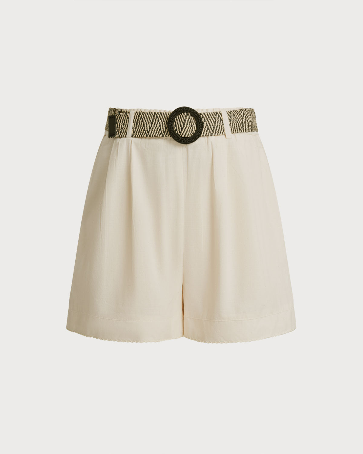 Kayısı Rengi Lastikli Bel Kemerli Şort