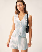 Belltoile™ Gri Çizgili Fermuarlı Şort