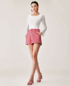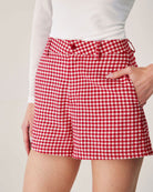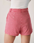 Belltoile™ Kırmızı Ekoseli Yüksek Bel Cepli Şort