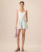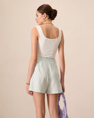 Belltoile™ Kadın Yeşil Ekose Cepli Geniş Paça Şort