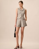 Belltoile™ Kadın Gri Yaka Pileli Cep Şort