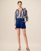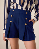 Belltoile™ Kadın Lacivert Yüksek Bel Pileli Şort
