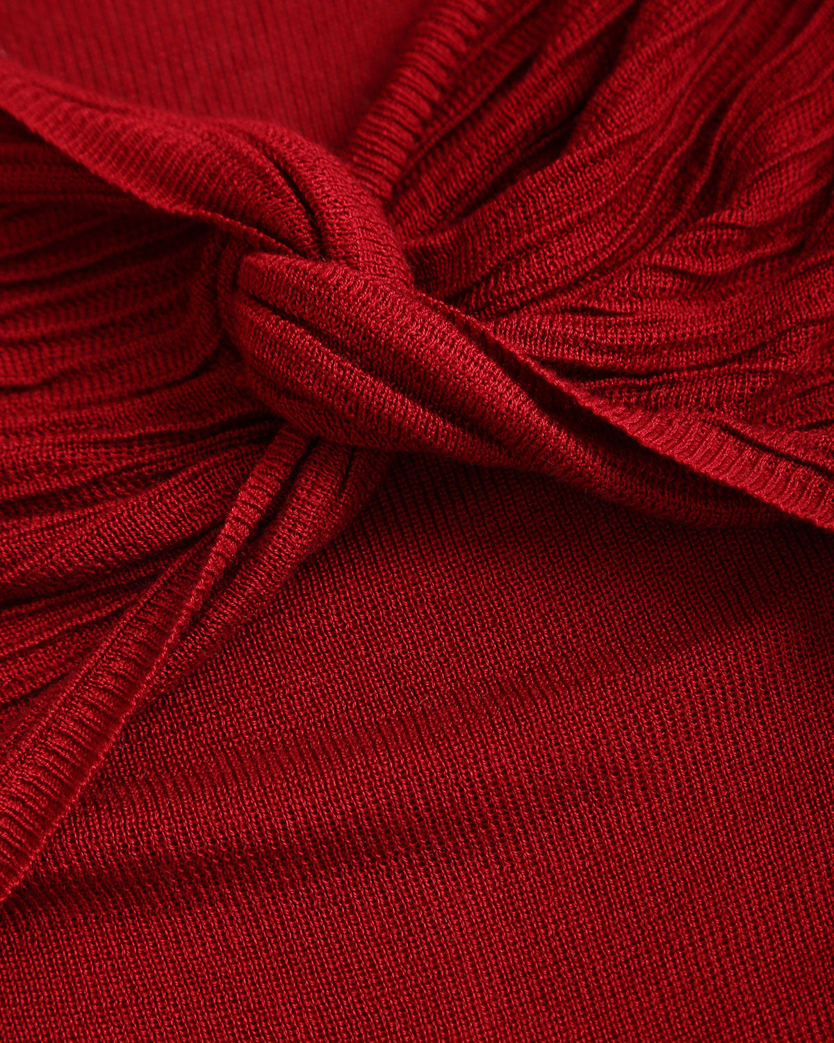 Kırmızı V Yaka Bükülmüş Örgü Tişört