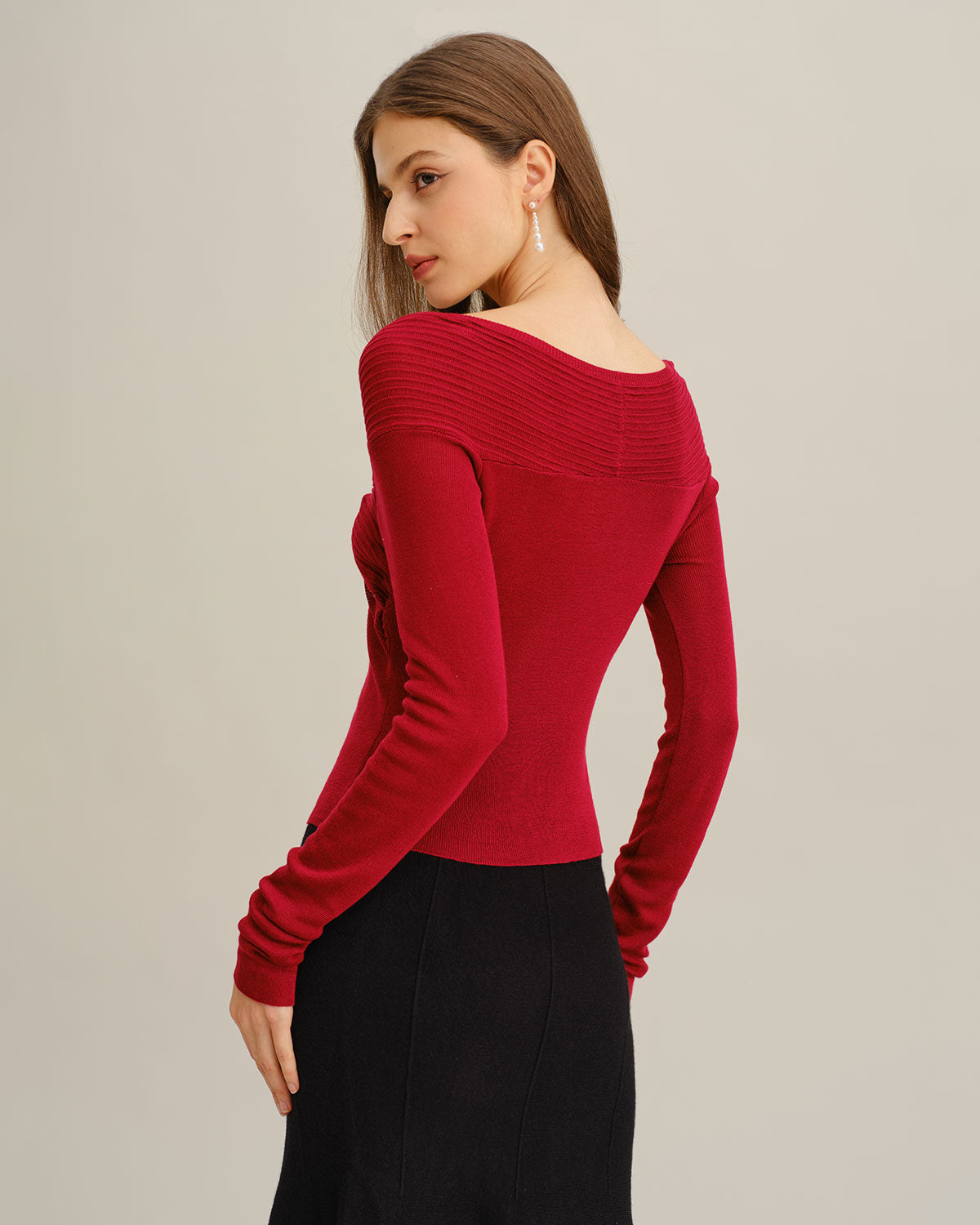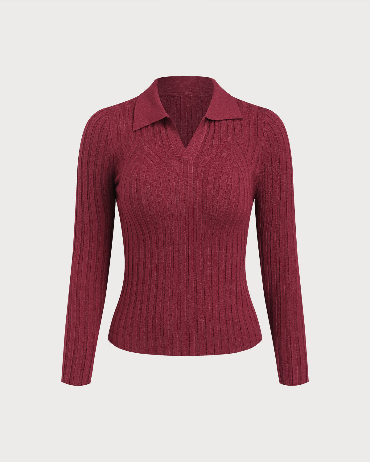 Kırmızı Örme V Yaka Çan Kollu Tişört
