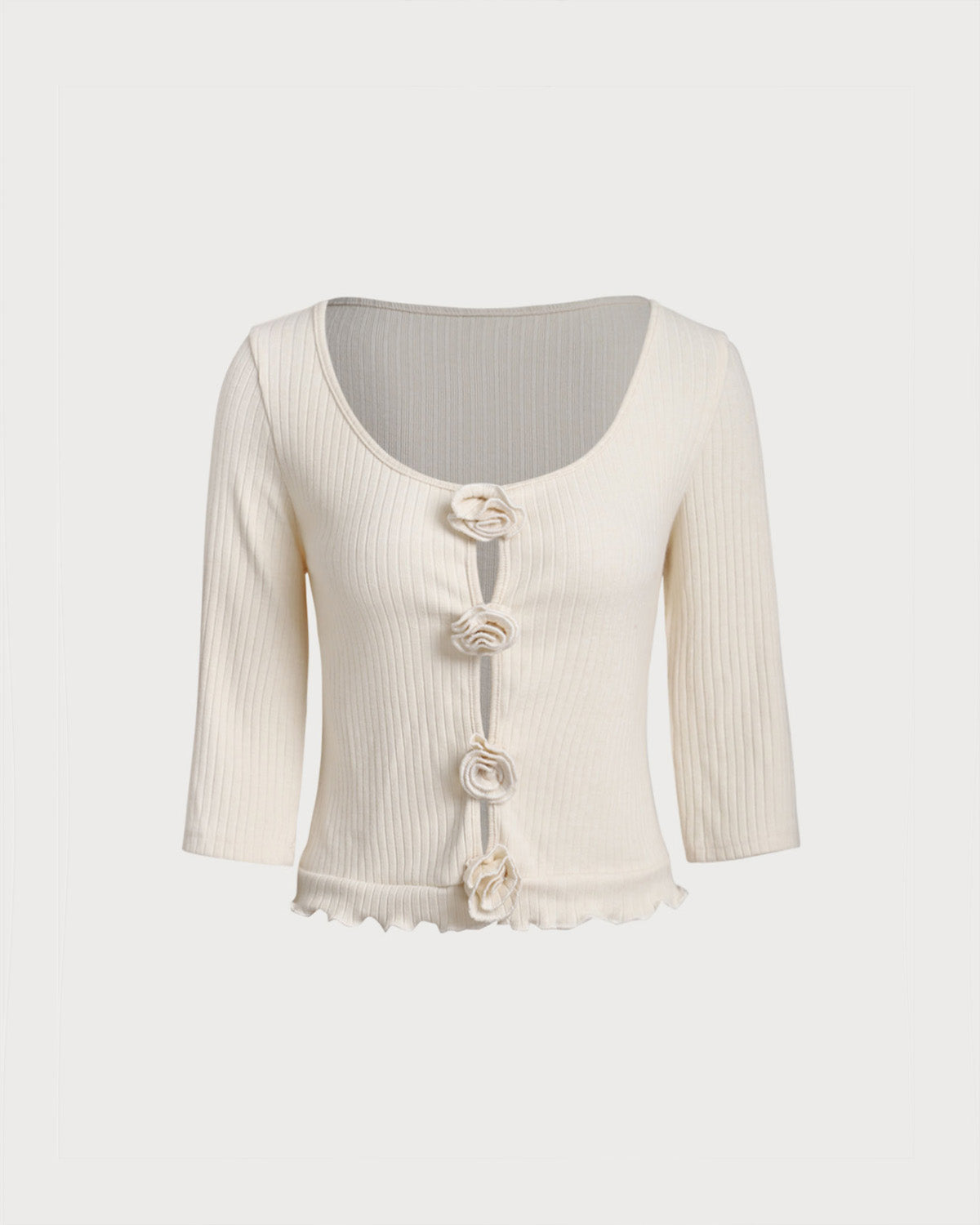 Kayısı Rengi Ribanalı Yarım Kollu Örgü Tişört