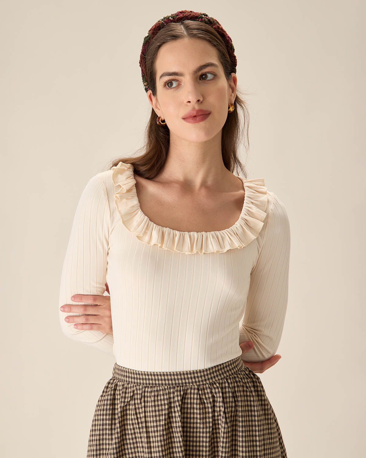 Belltoile™ Bej Fırfırlı Slim Tişört
