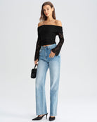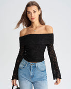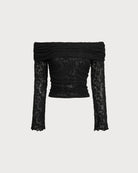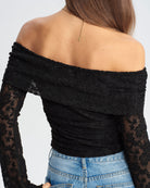 Siyah Dantel Omuzdan Açık Tişört