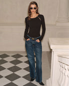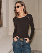Siyah Yuvarlak Yaka İnce Örgü Tişört
