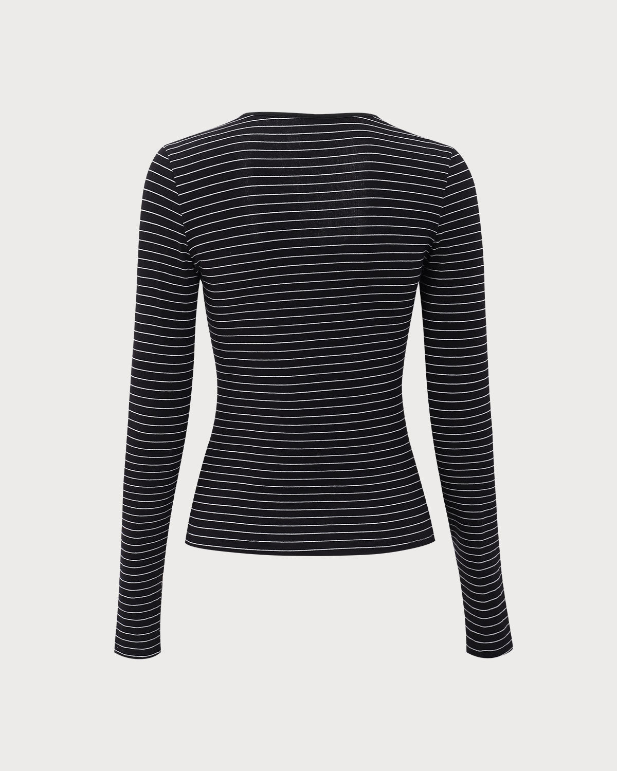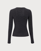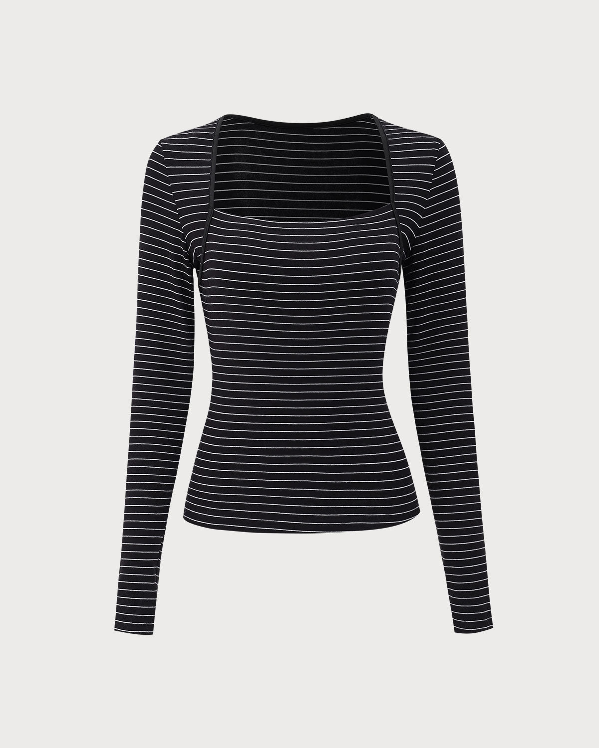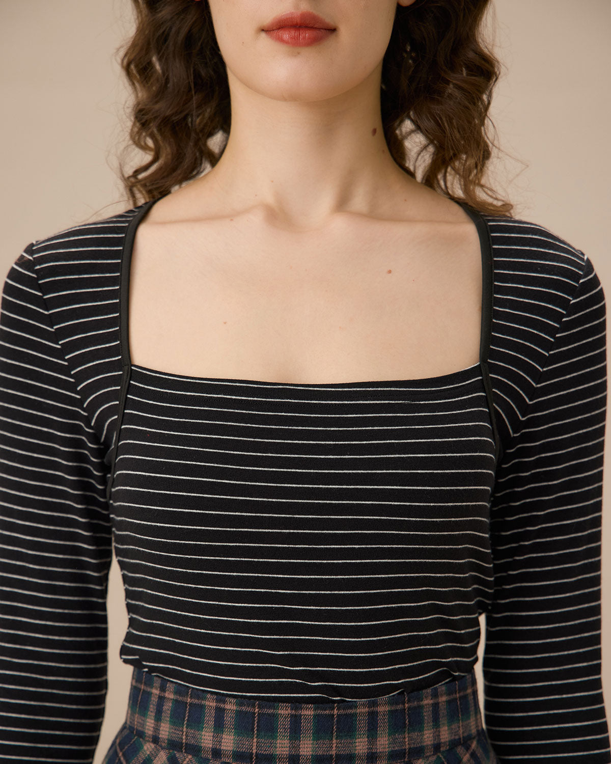 Belltoile™ Siyah Kare Yaka Çizgili Triko Tişört