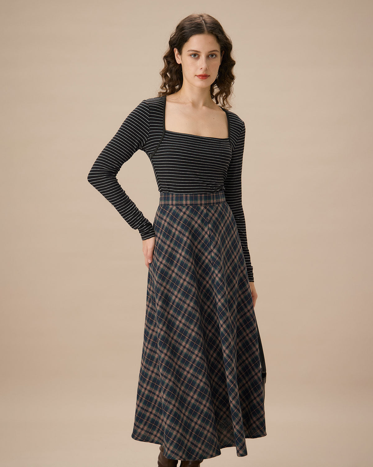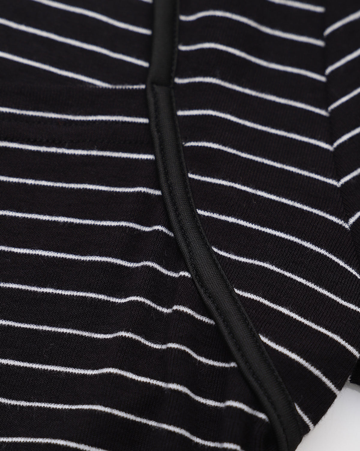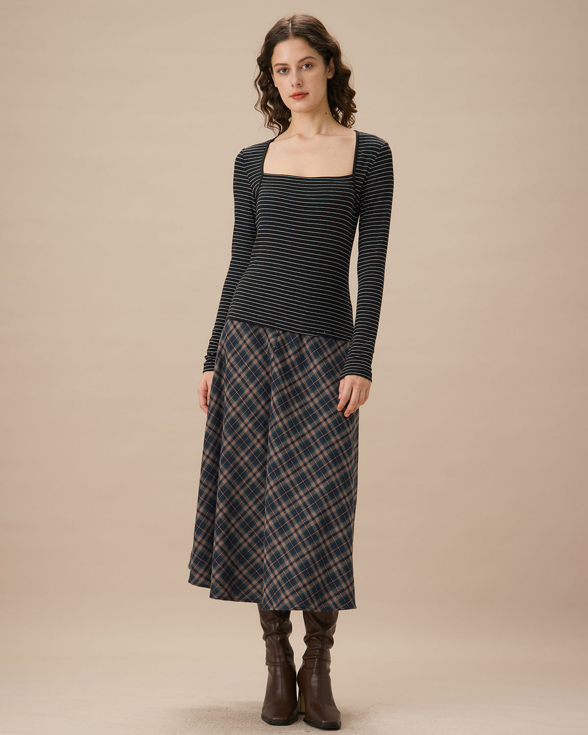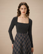 Belltoile™ Siyah Kare Yaka Çizgili Triko Tişört
