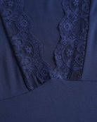 Mavi V Yaka Dantel Çan Kollu Tişört