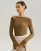 Kahverengi Tekne Yaka Çan Kollu Örgü Tişört