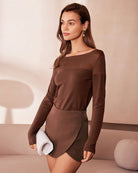 Kahverengi Tekne Yaka Şeffaf Tişört