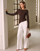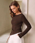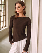 Kahverengi Yuvarlak Yaka Örgü Tişört