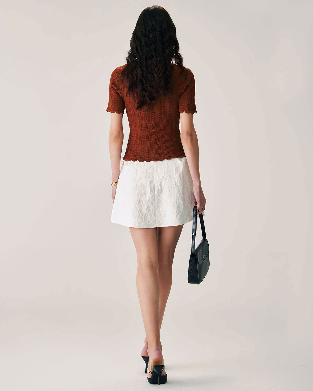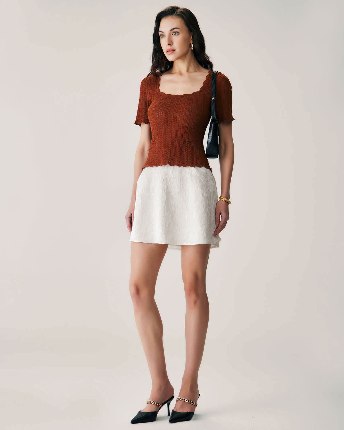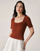 Belltoile™ Kahverengi Kare Yaka Fistolu Triko Tişört