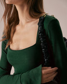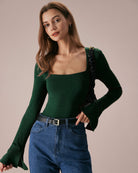 Yeşil Ribana Örgü Çan Kollu Tişört