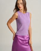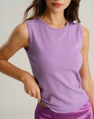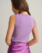 Mor Yuvarlak Yakalı Yivli Örgü Tişört