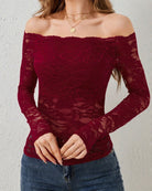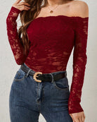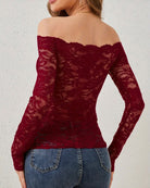 Kırmızı Çiçekli Omuzdan Açık İnce Tişört