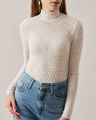 Bu saydam örme üst, daha çarpıcı bir görünüm için dik yaka, şeffaf tasarım ve dantel detaylarına sahiptir. Esnek nervürlü kumaş, size hem ekstra şekil hem de konfor sunar.