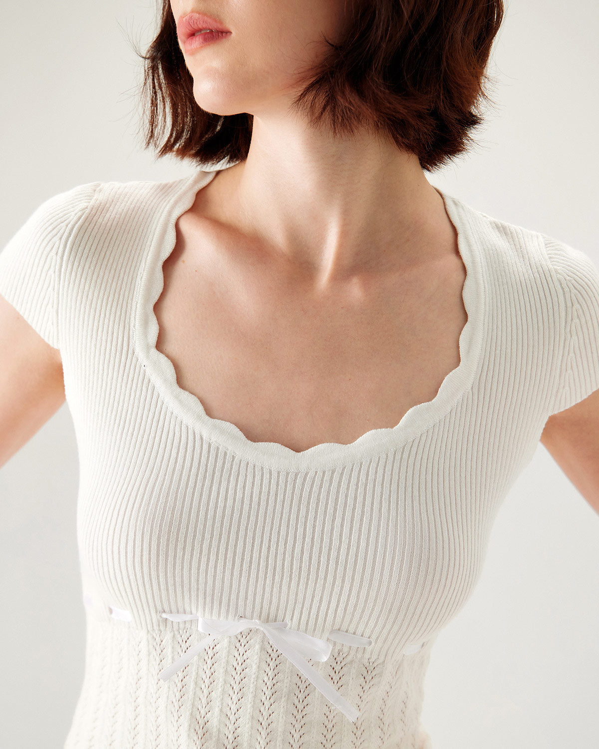 Belltoile™ Beyaz U Yaka İnce Triko Tişört