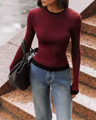 Şarap Kırmızısı Kontrast Örgü Tişört