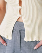 Belltoile™ Bej V Yaka Nervürlü Triko Atlet