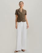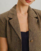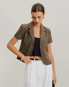 Kahverengi Ekose Düğmeli Kısa Kollu Ceket