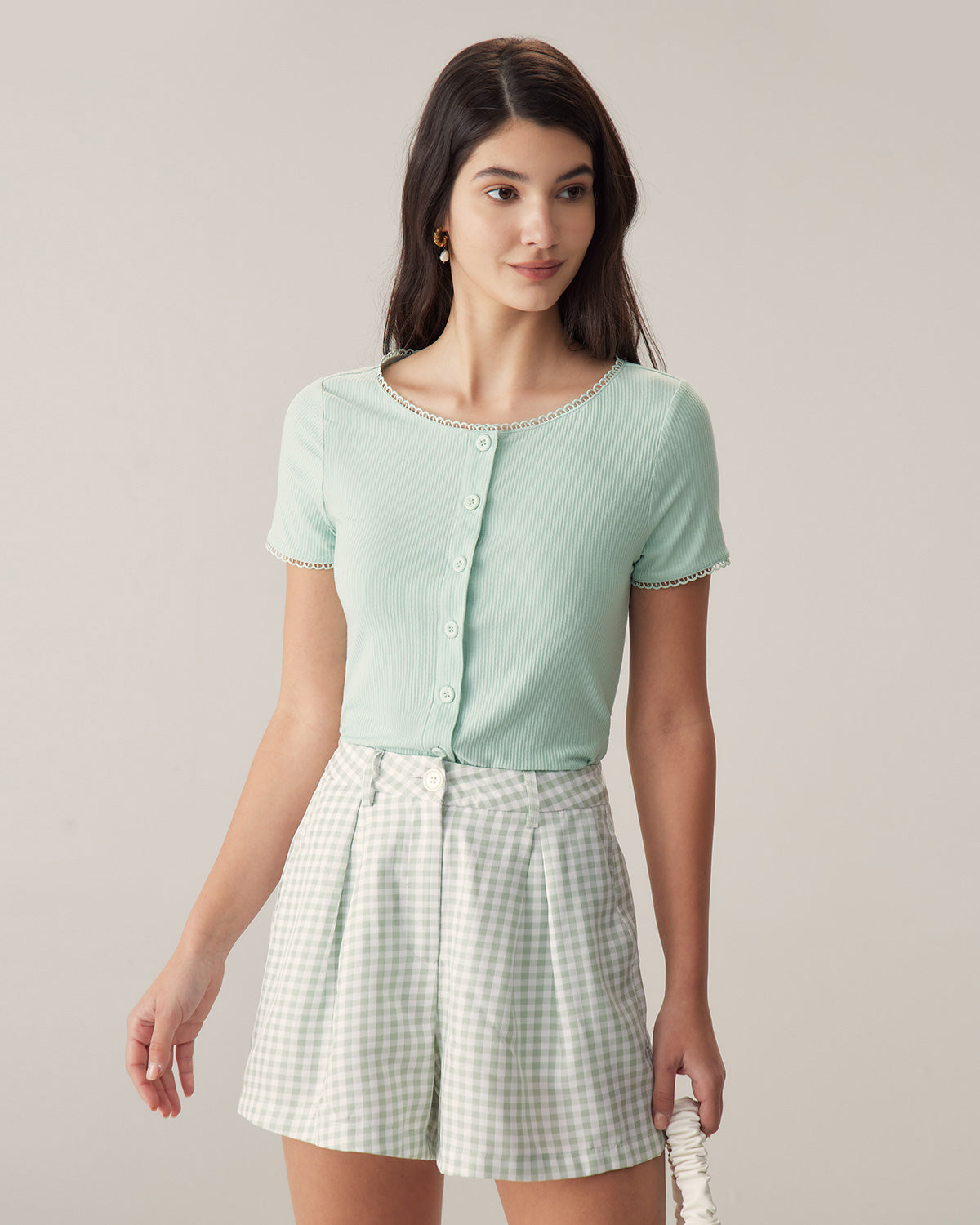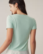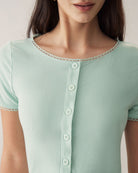 Belltoile™ Yeşil Yuvarlak Yaka Düğmeli Slim Tee