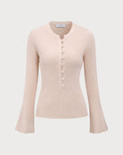 Belltoile™ Kayısı Yuvarlak Yaka Düğmeli Örgü Üst