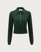 Belltoile™ Koyu Yeşil Yaka Fitilli Dokulu Triko Üst