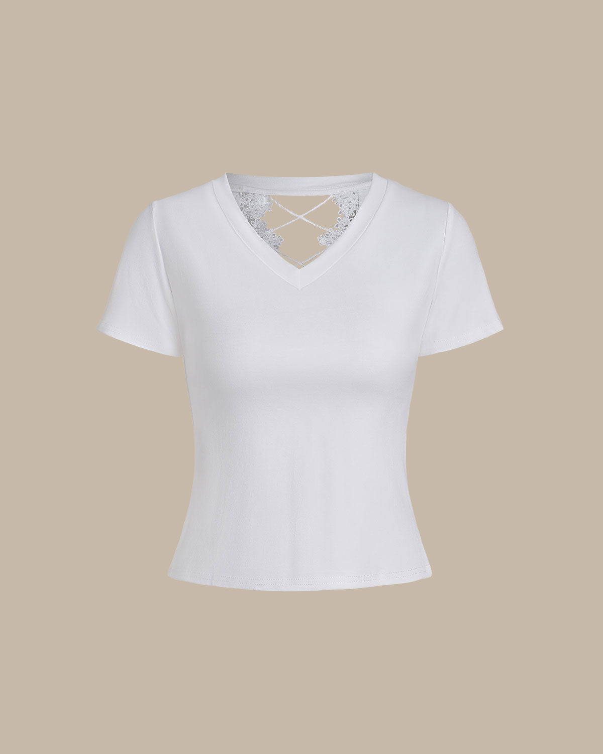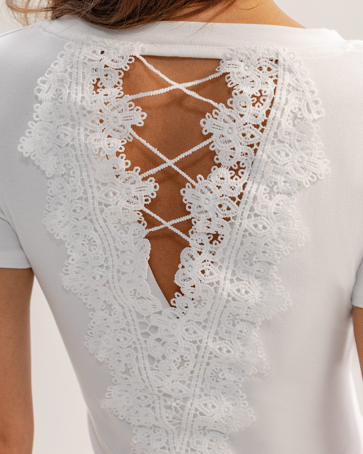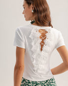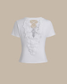 Belltoile™ Beyaz Dantel Yuvarlak Yaka Tişört