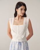Belltoile™ Beyaz Fırfırlı Nakış Tankı